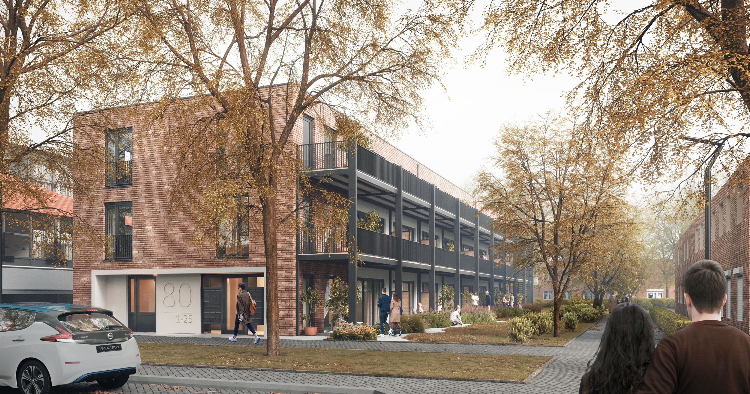 De nieuwe bebouwing voegt niet alleen 2 studio’s en 23 lichte appartementen met zonnige buitenruimtes toe, maar brengt ook een merkbare kwaliteitsverbetering in de openbare ruimte. Waar de gymzaal een gesloten object was, ontstaat nu een open groene setting met een gezamenlijke tuin en zorgvuldig vormgegeven semi-openbare plekken die de wijk zichtbaar opfrissen. De houten architectuur sluit aan bij de groene structuur van Fortuinwijk en geeft het gebied een warm, eigentijds karakter.