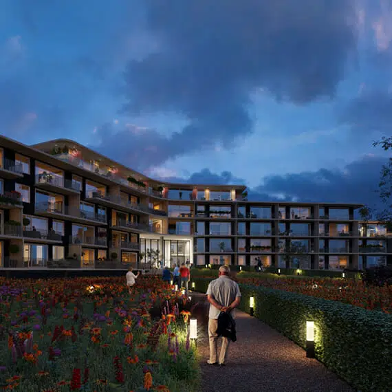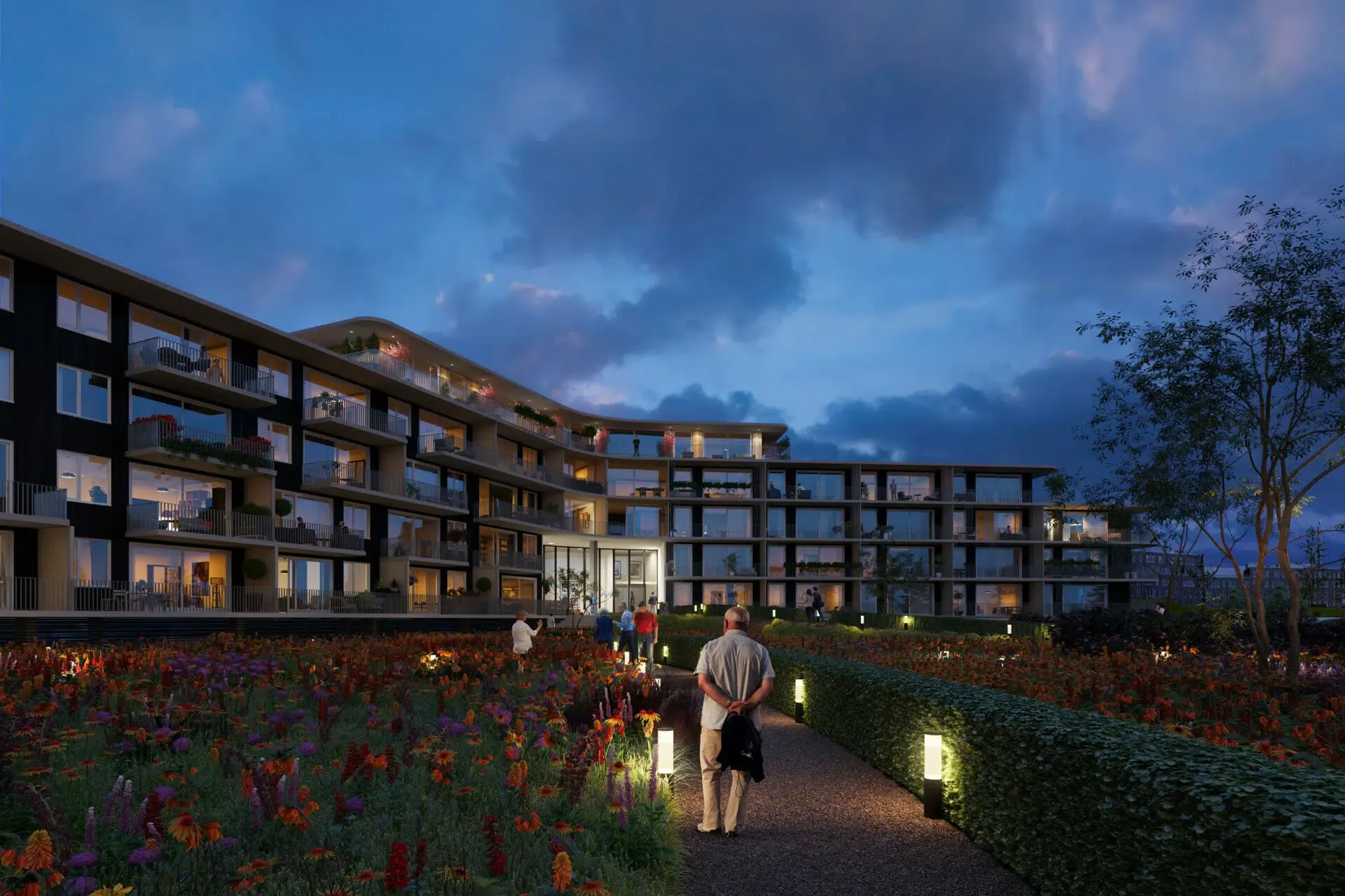 Juist in dat spanningsveld vond Sustay zijn rol. Waar eerdere concepten stukliepen, wist Sustay een plan te ontwikkelen dat niet alleen stedenbouwkundig logisch was, maar vooral sociaal duurzaam. In nauw overleg met omwonenden ontstond een gebouw dat volledig is ontworpen rondom senioren die zelfstandig willen blijven wonen, maar wel behoefte hebben aan een veilige, groene en sociale omgeving. Het hart van het plan is de gemeenschappelijke tuin, een beschutte groene ruimte die het gebouw letterlijk en figuurlijk bijeenhoudt. Vanuit alle woningen kijk je het groen in, waardoor rust, overzicht en ontmoeting als vanzelf onderdeel worden van het dagelijks leven.